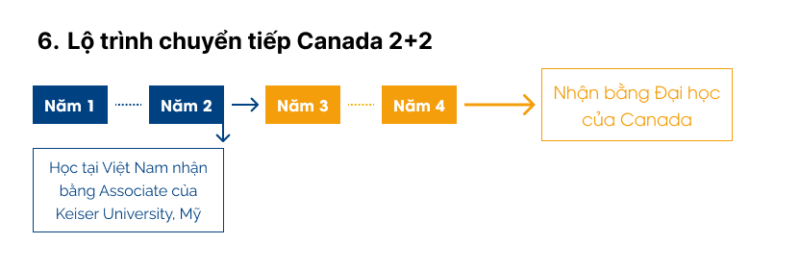 Sinh viên muốn du học tại Canada với mức học phí tiết kiệm có thể lựa chọn lộ trình này. Theo đó, sinh viên sẽ học chương trình 2 năm đầu tại KUV với mức học phí ~168 triệu đồng/năm, sau đó chuyển tiếp du học sang Canada để học tiếp 2 năm còn lại để nhận bằng Cử nhân Đại học của Canada, đồng thời hưởng các chính sách ưu tiên của Chính phủ Canada dành cho đối tượng du học sinh hiện hành.